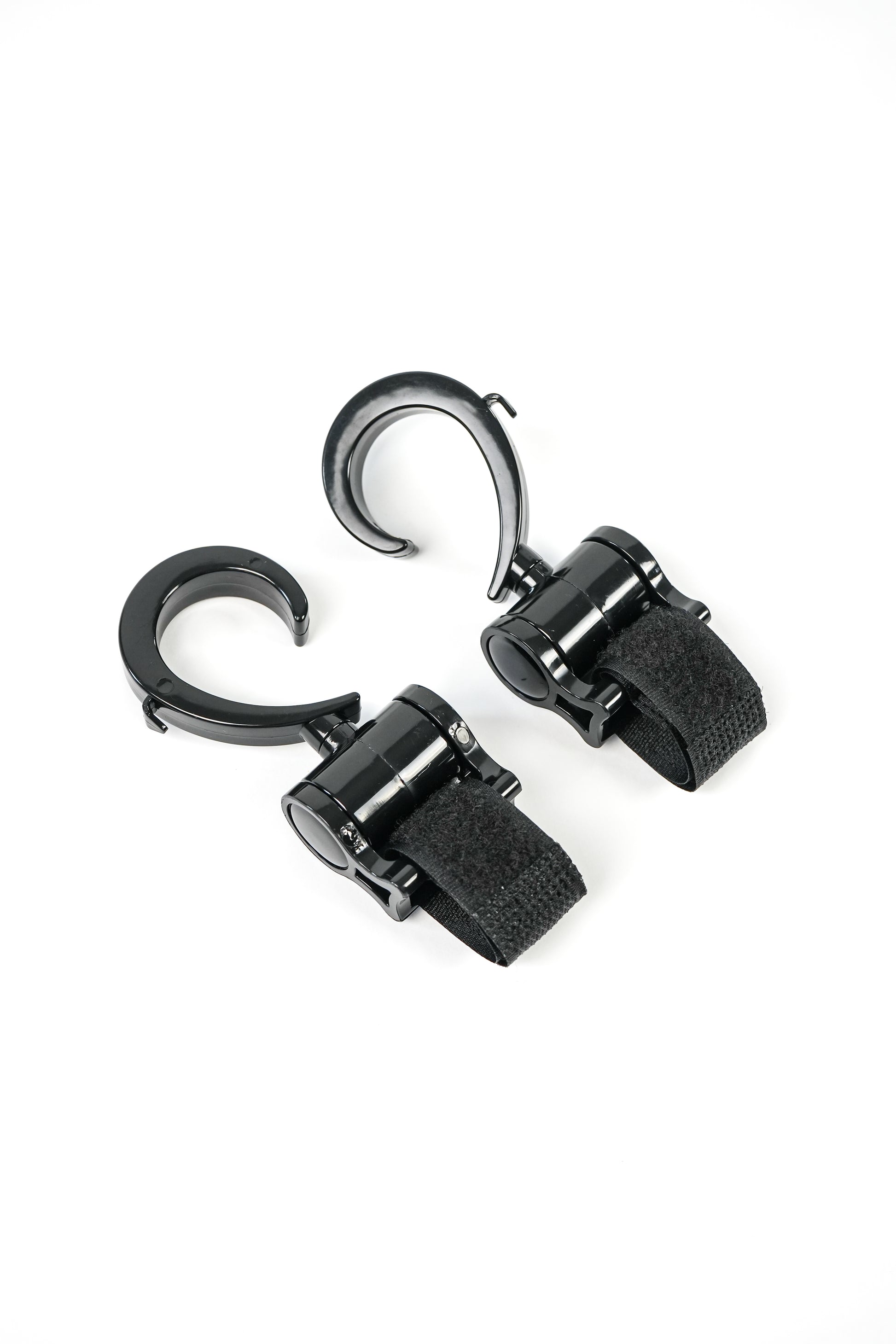 Stylish stroller clips with adjustable fabric straps and secure metal hooks, perfect for attaching pacifiers, toys, or essentials to a stroller or baby carriage. The clips ensure items stay within reach while keeping little hands safe and tidy during outings. Ideal for parents on the go who want convenience and durability in baby accessories.